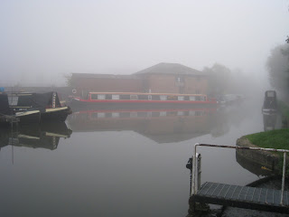 Near Old Linslade we passed the boat of a former teaching colleague, Barbara, who is now retired, and who was setting off towards the north on an extended trip with her husband. I shouted news about our trip across, saying that I'd catch up properly later. Just around the bend, where we'd moored on the first night of our trip was a BW boat across the cut. Now, most people would just push it out of the way, but somehow... Well, David likes to do things right, so we 'rescued' the boat, making the only use of our boarding plank during the whole trip.